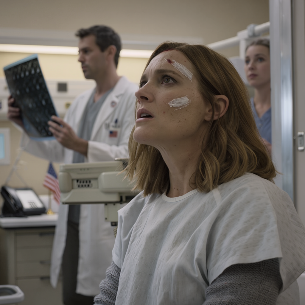 I sat on the paper-covered bed with my hands in my lap, wearing a hospital gown that never quite closed in the back. My neck was stiff. My head felt too heavy for my spine. Every few seconds a pulse of pain flashed behind my right ear, bright and nauseating.