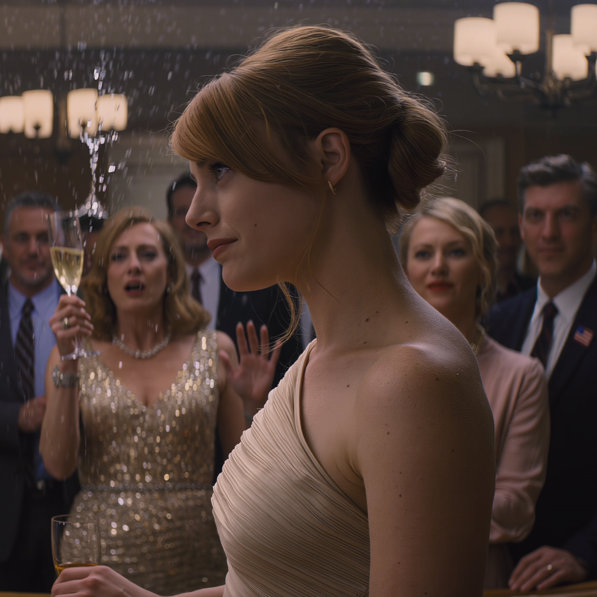 I smiled because she had no idea. She was standing there with a glass she thought she controlled, and she had absolutely no idea it was halfway to slipping from her fingers.
