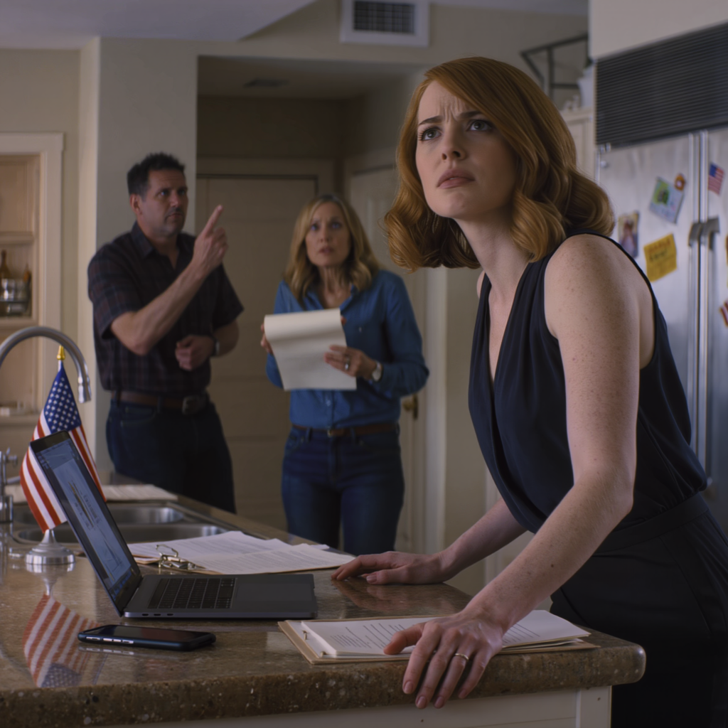 On the refrigerator door, the little American-flag magnet John had begged for at a roadside gas station was still holding up his last crayon drawing. The paper curled at the edges. The flag tilted slightly, like it was bracing for impact.