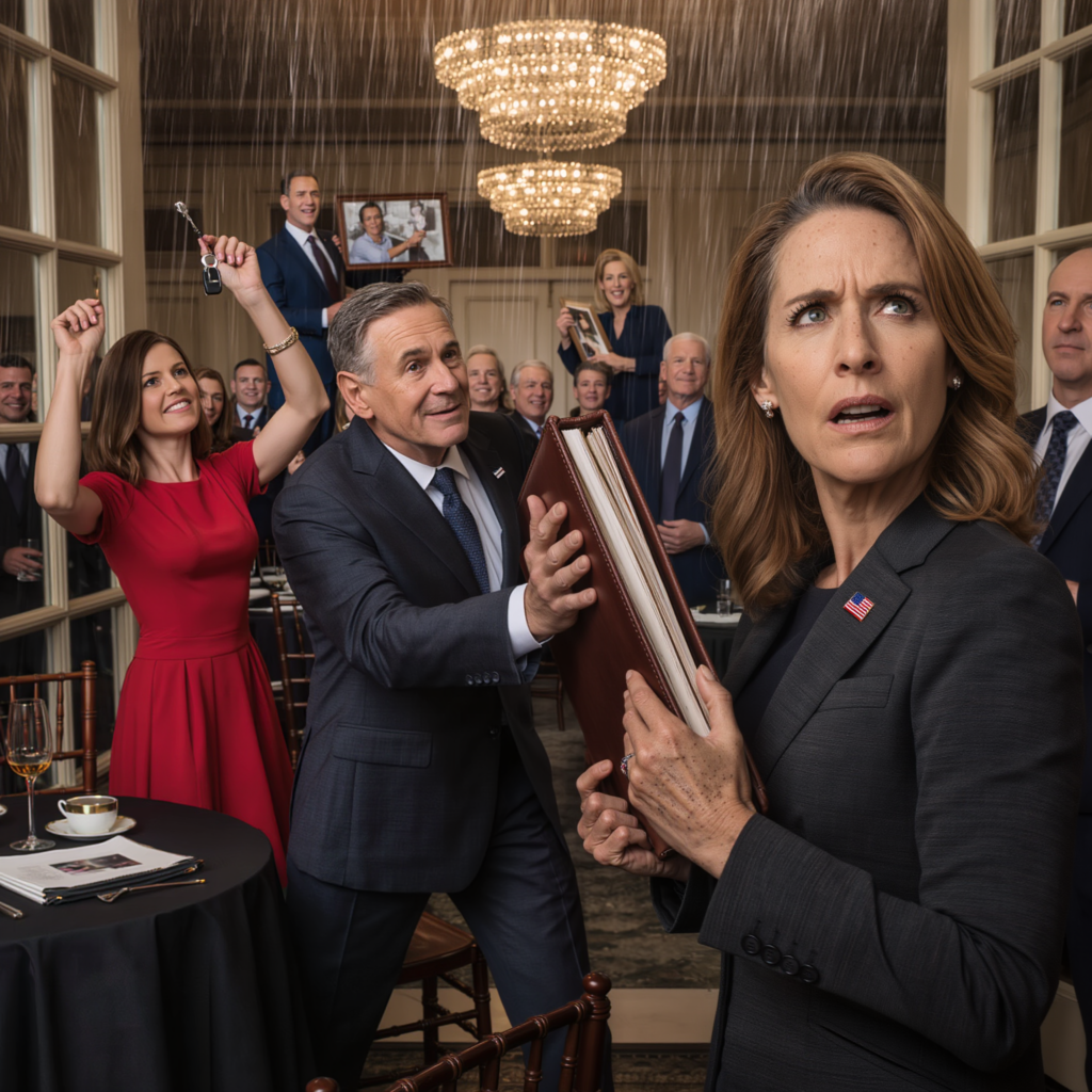 And on the counter, right beside my untouched iced tea, sat the heavy leather binder my father had shoved into my chest in front of two hundred people.