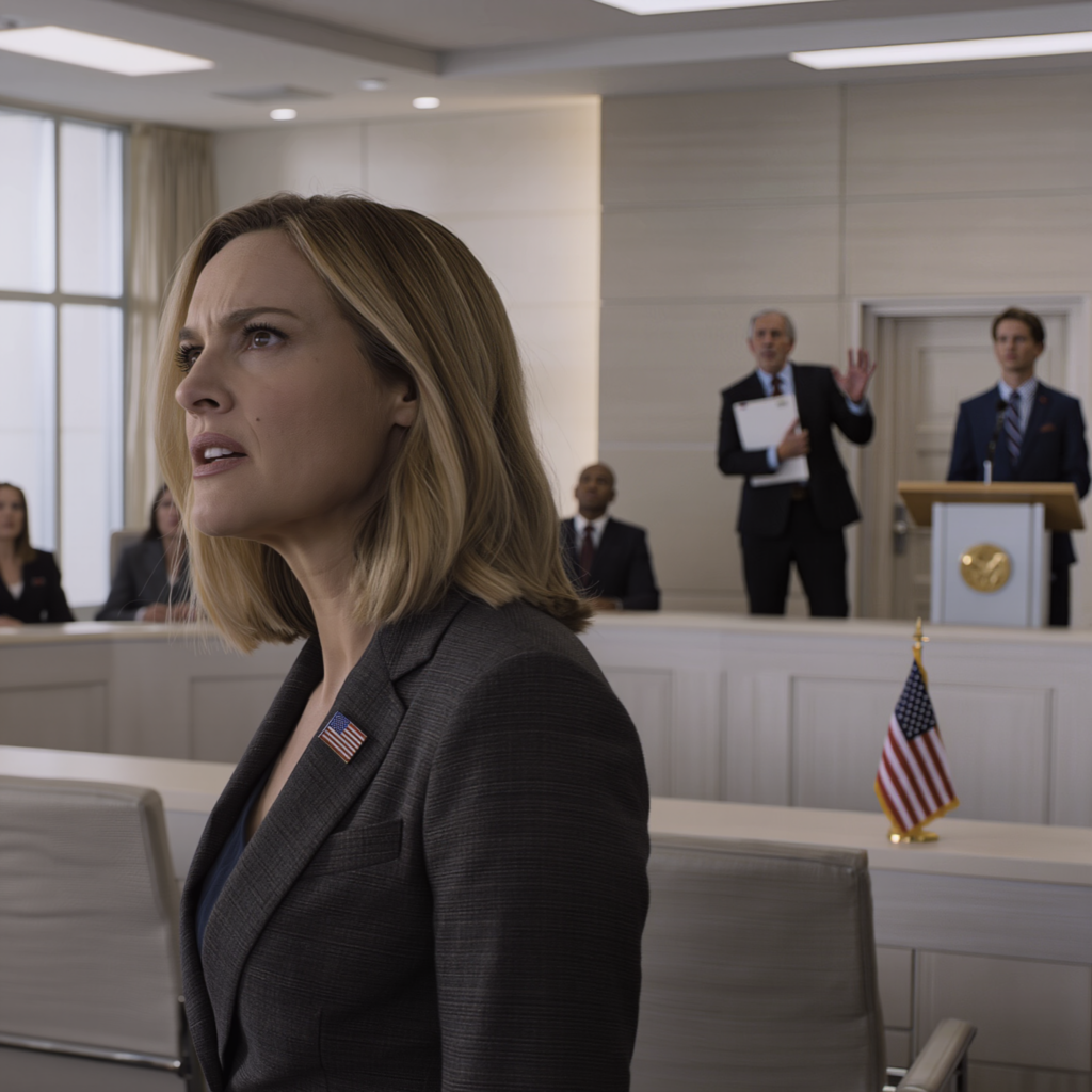I sat at the defendant’s table with a plastic cup of courthouse iced tea sweating onto the oak, the lemon slice sliding down the side like it wanted out. Someone in the hallway had a radio turned low—old Sinatra, the kind of song that makes you think of clean suits and dirty deals—and every now and then the bass thumped through the wall. My navy blazer was plain except for one thing: a chipped enamel U.S. flag pin on the lapel, the red dulled from years of being brushed by my own thumb.