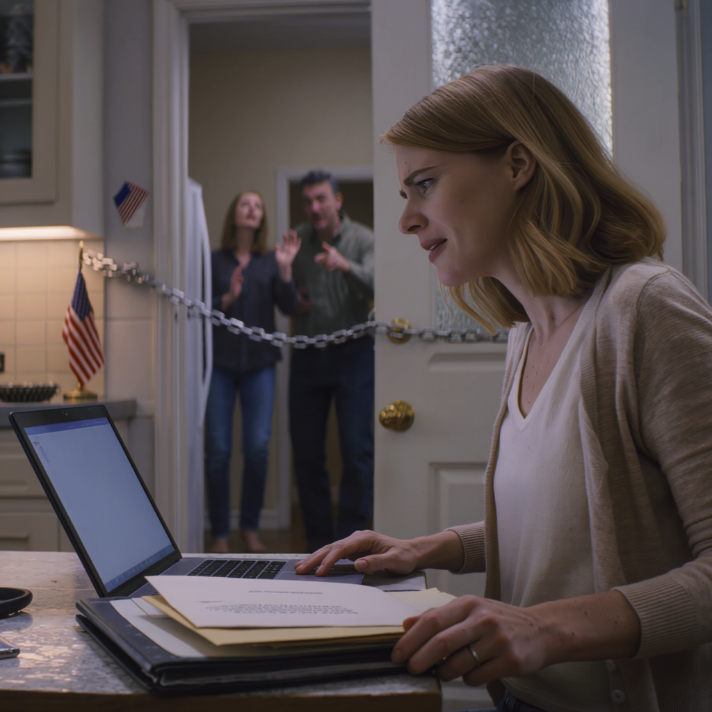 When I checked the peephole, my dad’s sedan was parked crooked at the curb like they’d stopped mid-breath. Holly sat in the passenger seat, chin tucked, hands curled in her lap, her wheelchair visible in the back. My mom stood on my welcome mat, already angry, already convinced I owed her something.